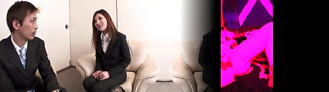 Japanese girl gives a blowjob in a job dialogue!