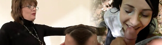 Busty mature lesbian hotty takes total sexual advantage of her maid and sucks her off