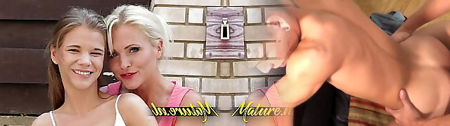 Young blonde seduces mature female