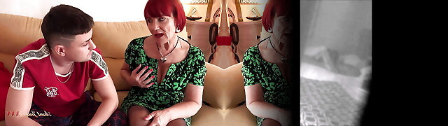 Hairy busty mom and son