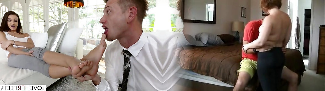 Sista catches stepbrother witnessing porno and helps gals bottom leg to cum