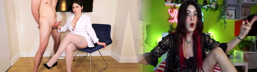 Sexy Nurse in Nude Stockings CFNM Handjob on wife feend Legs