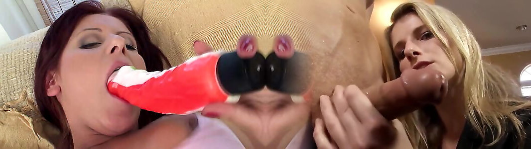 Two blondes ravage an hard man-meat