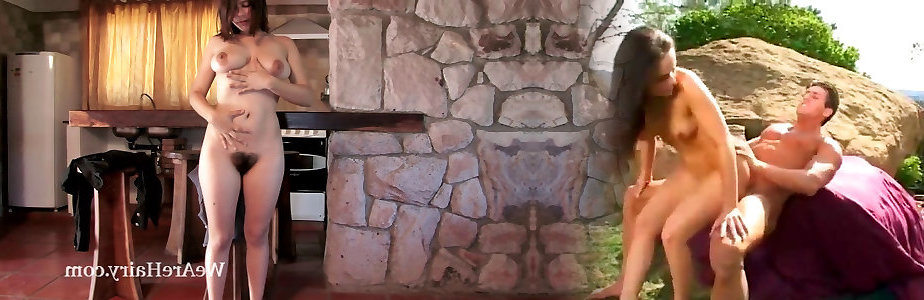 Hairy wifes mom riding his huge man meat