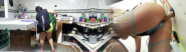 Hot Aunty taking food out of fridge when puts her head inside fridge & Huge cumshot - Fuck & Jizm Behind Bum