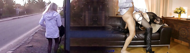Going to work in a blouse, skirt ,stockings and heels. Ready for my younger boss to inspect my mature tits, ass and bald cunt.
