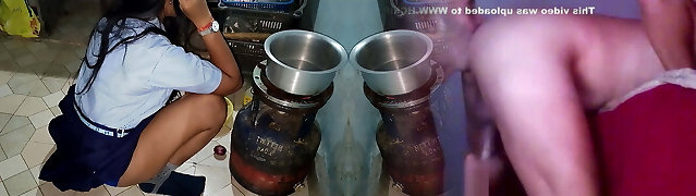 step sister Struggling in the kitchen with step brother fucking
