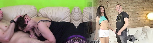 Glamour eurobabe pokes mature couple