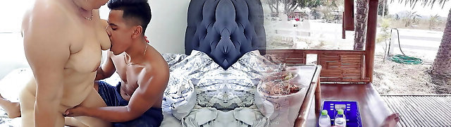 He fucks his cousin in her pj's, stunning nephew with a delicious body is fucked in her bedroom by her cousin