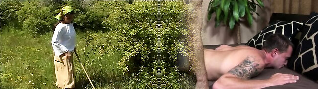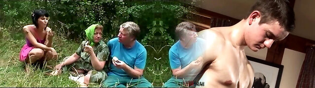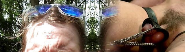 He takes a granny out into the woods and nails her vintage pussy