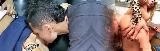 Small Asian school dolls licked and fucked in mature gangbang