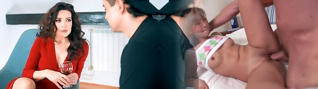 Stepdad fucked daughter in the mouth while mom doesn't see