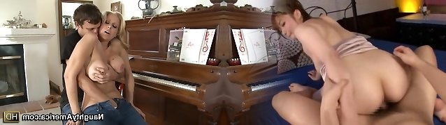 Mom encourages youthful man with sex