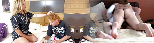 Helpful Mummy Spreads Her Daughter's Ass For A Cock