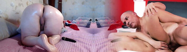 step sister FEMDOM teasing stepbrother, cbt, inserting HUGE Faux-cocks deep in his ass, butt buttplug, glass dildo, popshot