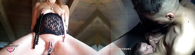nippleringlover horny milf tucking bead chains through extreme stretched pierced nipples hefty rings in pussy lips