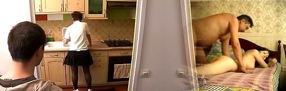 Mature wide and young chicks have threesome