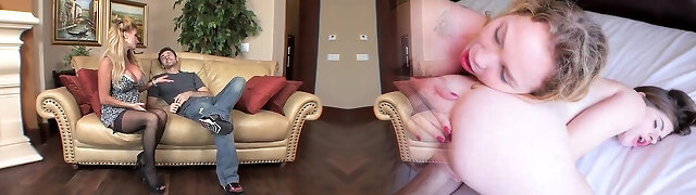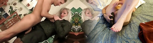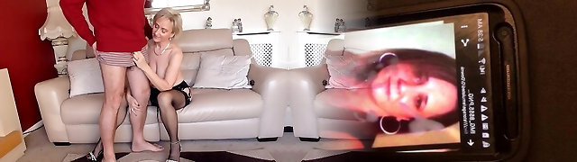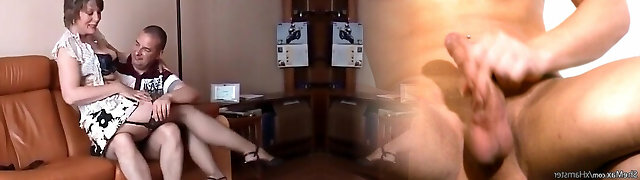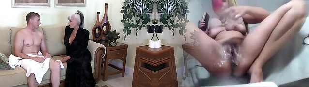 Mature blonde in stockings humps the boy part1