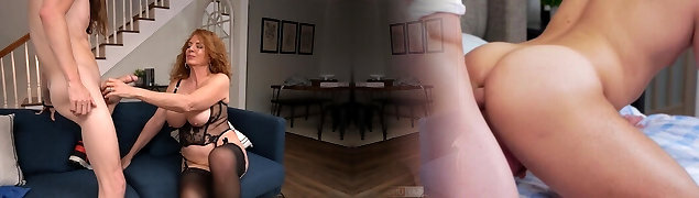 Busty Mom in Stocking Fucks Young Cousin