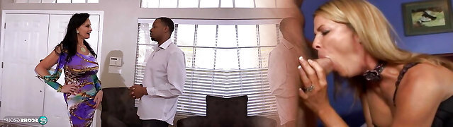two young guys fuck their neighbor in her milf gash