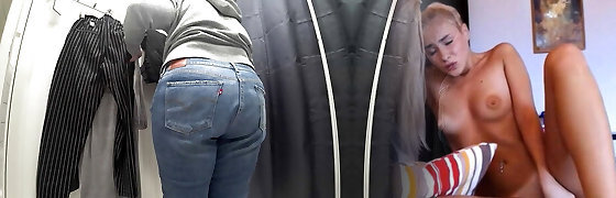 In a fitting bedroom in a public store, the camera caught a chubby milf with a gorgeous ass in see-through underpants. PAWG.