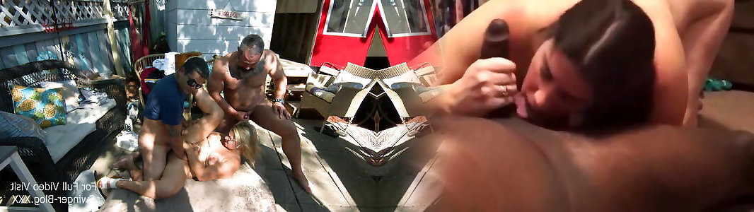 Blonde Milf takes ample ebony stiffy from behind in swinger 3some