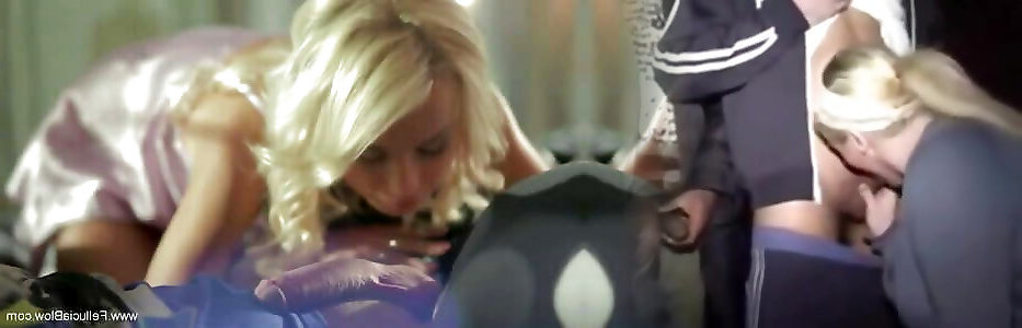 Seven boys are penetrating one starving well shaped blond slut in the hotel