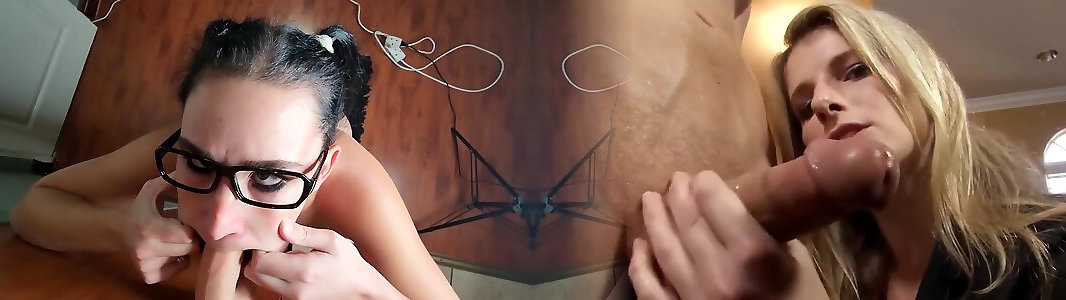 Squint-eyed dark haired provides a hard-on with a stout blow-job for spooge