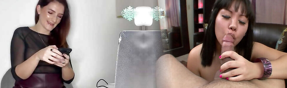 His wife took charge, sucking his tiny dick off