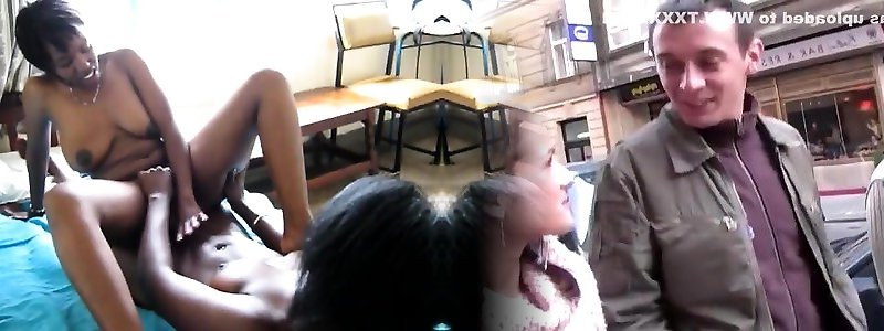 Trio with two busty african babes