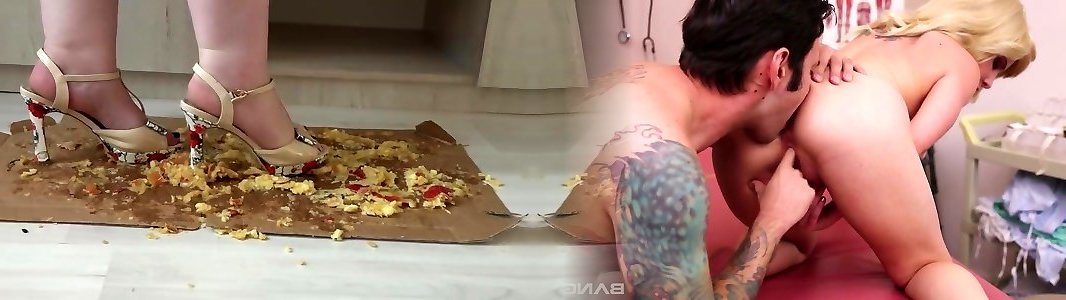 bbw in high high-heeled shoes kicks apples
