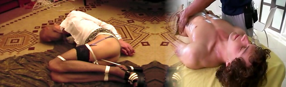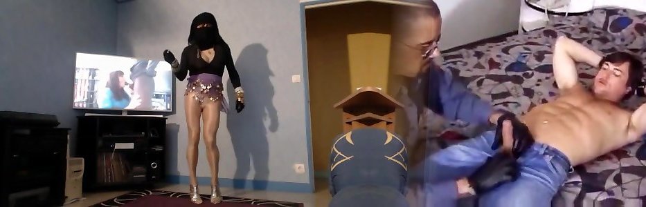Ala gets on top of gimp and gives foot job and facesits dressed in nylons.