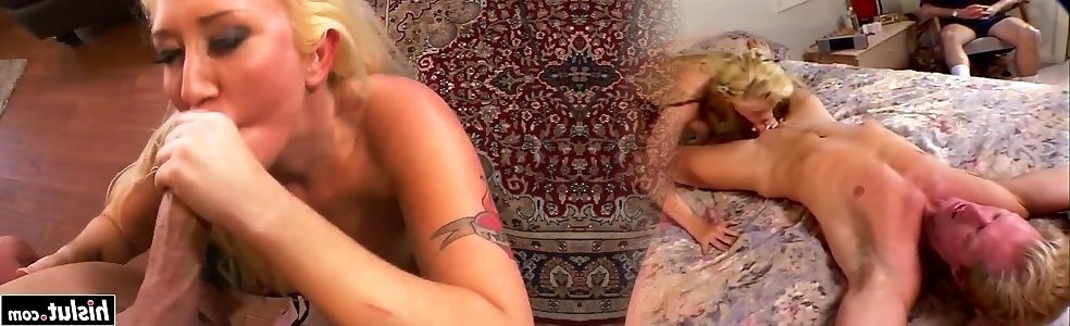 Super-sexy blond femmes Alana Evans and Bentley give head to a steamy stud