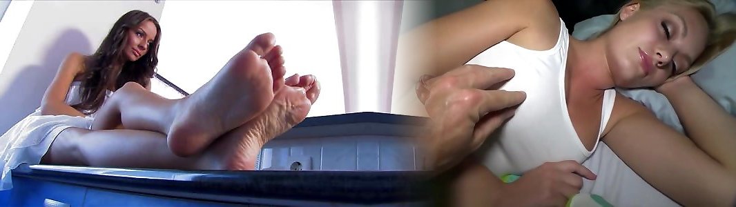 Alexia giving a foot job and getting banged. Jizm on feet.