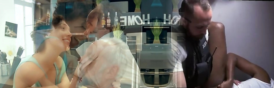 Weirdo american bombshell poking old geezer in the kitchen