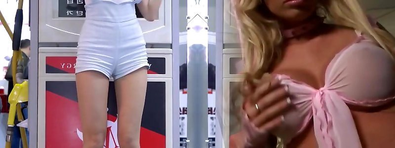 Suntanned spectacular blonde housewife cheeky petite Law works on super rigid trunk