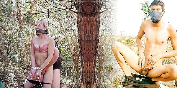Woman tied and fucked in the jungle by big cock soldier