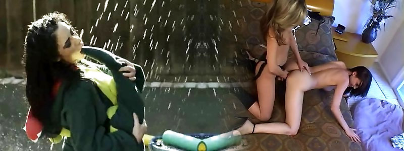 Busty girlgirl ladies with unshaved vags screw in the douche