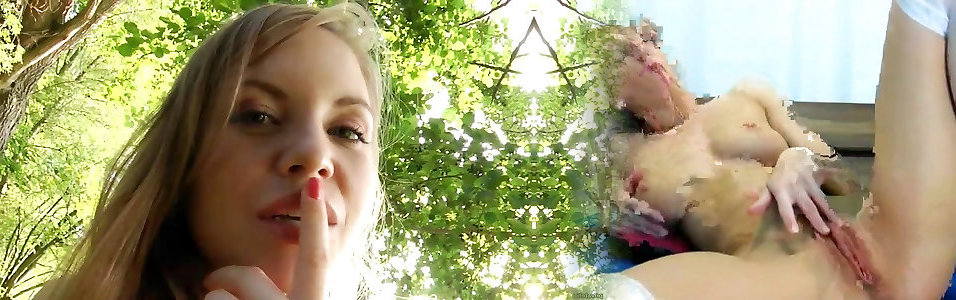 Hot blonde mom Alexia having fun with 2 cocks in the forest