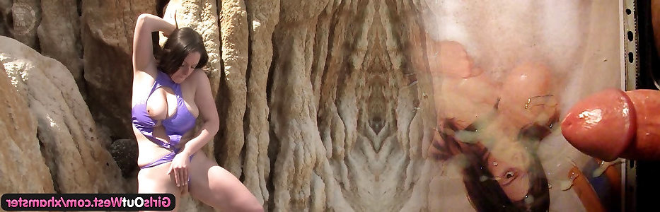 Damsels Out West - Big-titted milf toilett stunner pounds a fake penis by the river