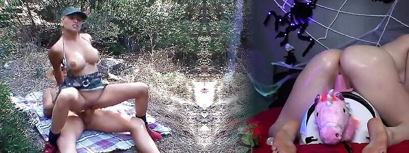 Super busty German blonde pleasing her dude near the road with her holes