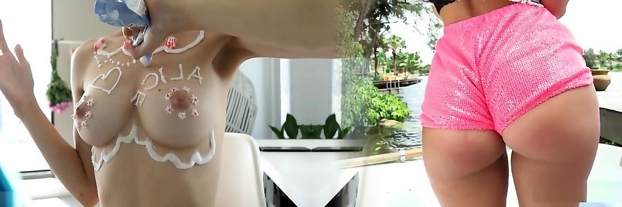 Body painting fuck of small titted slut