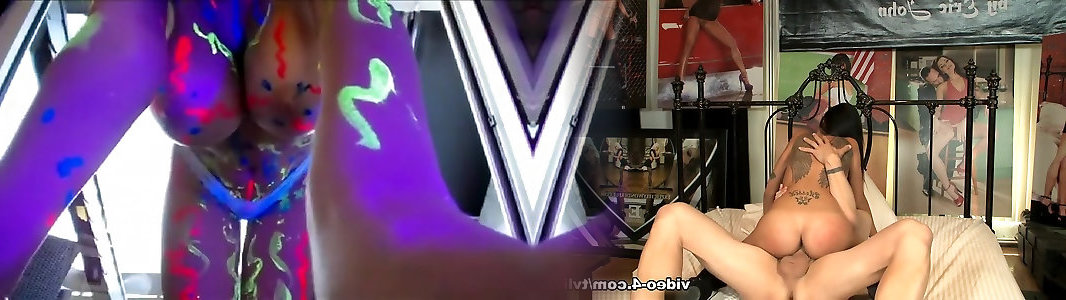 Huge-titted black-haired hotty paints herself in luminescent paint f