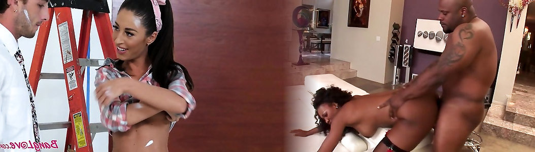 Blond nubile needs some help painting the mansion
