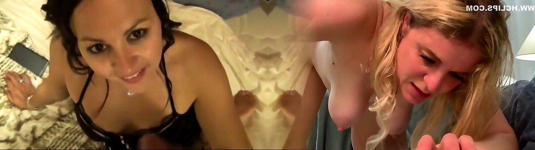 Youthful woman aims cumshot at milf while jerking pecker