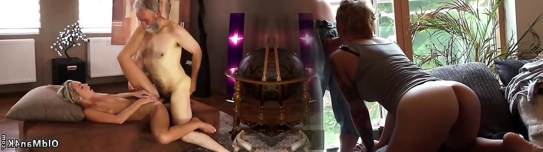 Elder fellow plows sandy-haired and old duo youthful duo and gross elder fellow and