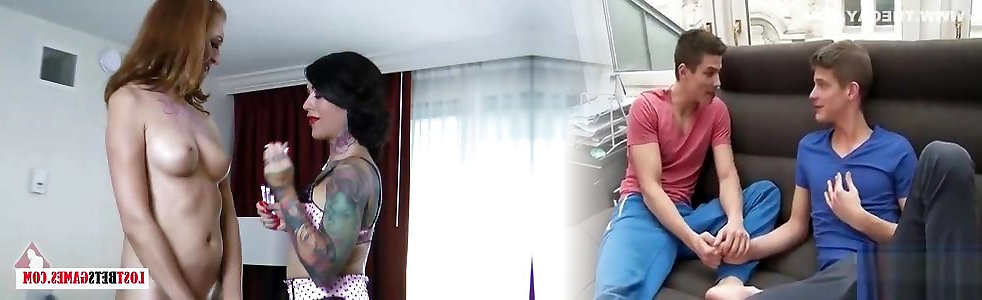 Inked bombshell and tall sandy-haired have fun strip word jumble
