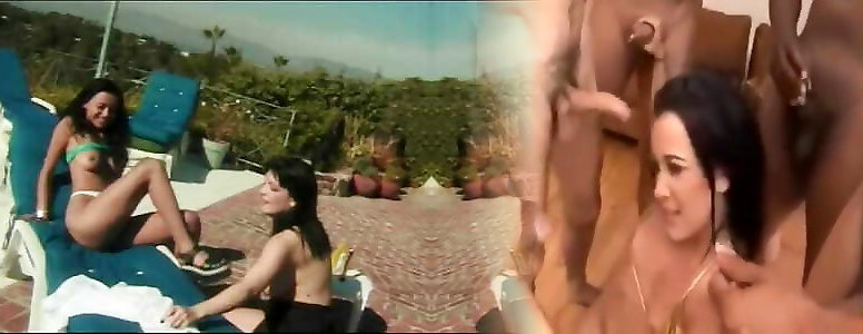 2 dark-haired coeds with great orbs experiment and slurp cootchie on pool deck