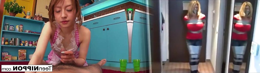 Chinese sweetheart gives a blow-job in the kitchen