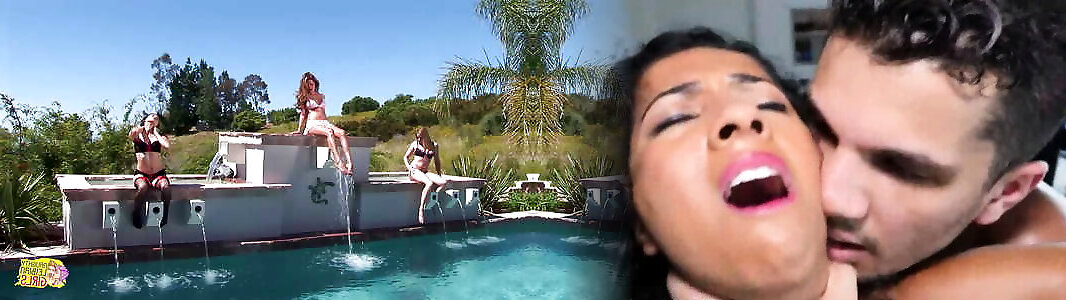 Breasty girlfriend embarks by pool and finishes with facial cumshot